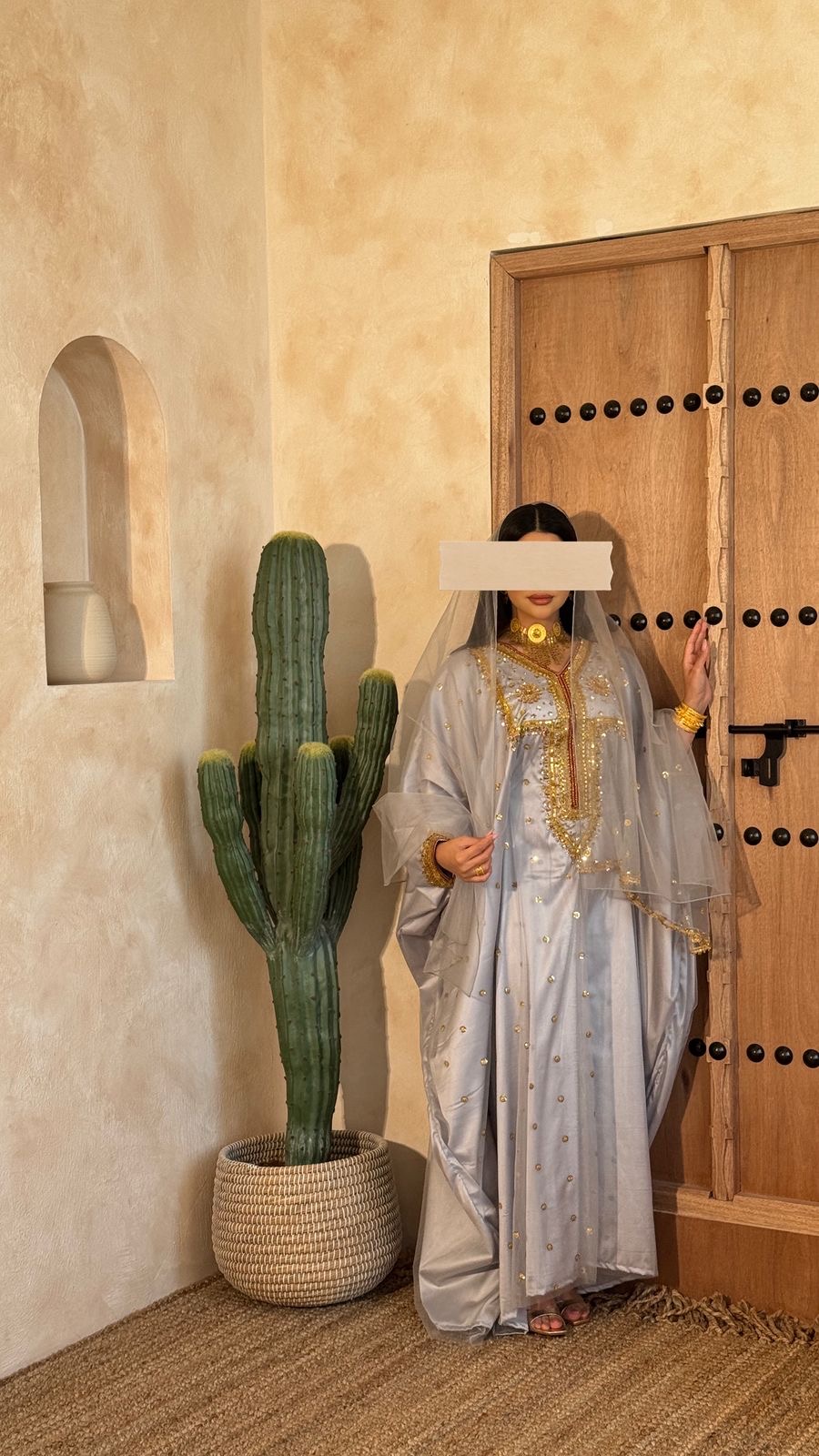 اللبسة مع شال تور وحزام داخلي